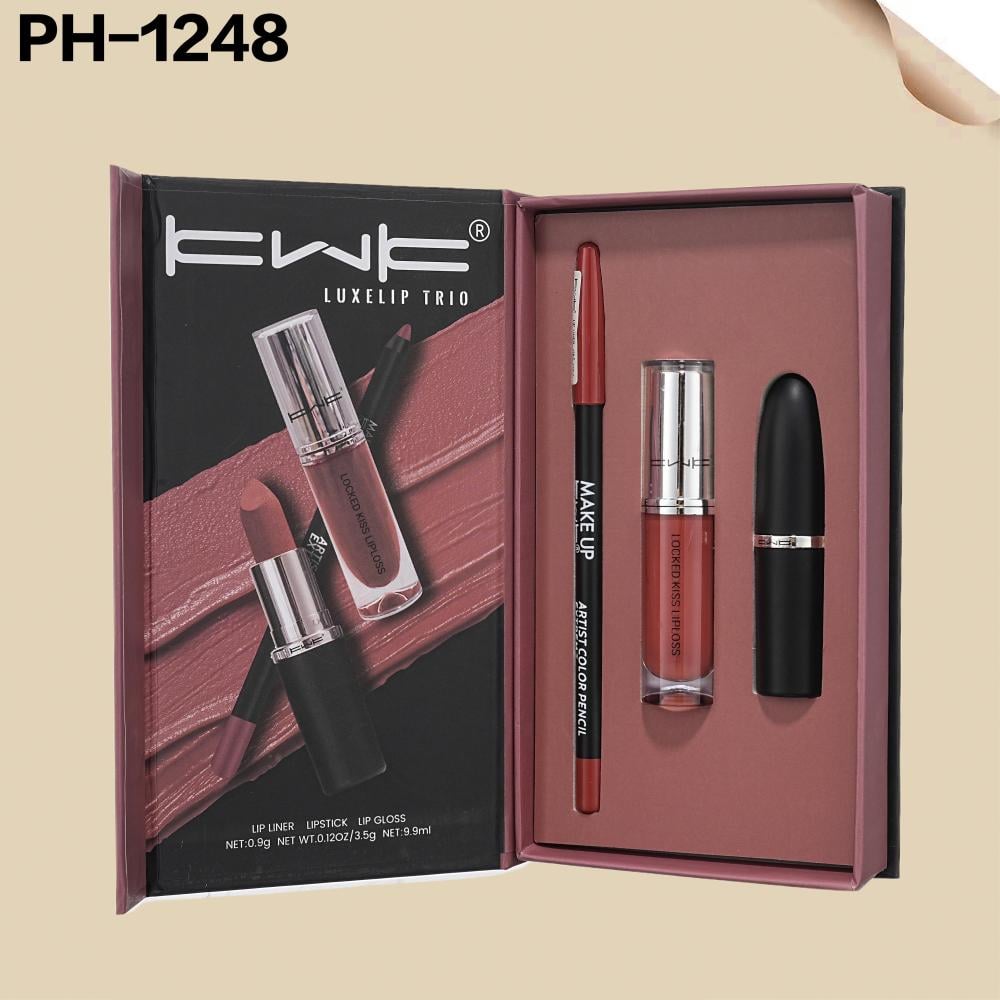 طقم روج ثابت + جلوس شفايف +محدد شفايف KWK PH-1248